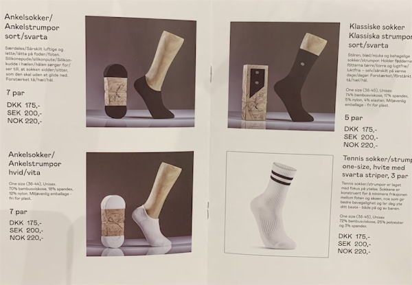 Förutom påsen så tar Sophie även ett paket svarta ankel och ett paket svarta klassiska strumpor. Swishar 440 kr.