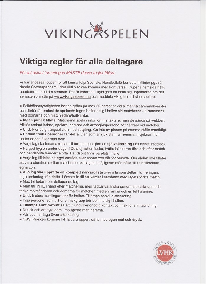 • Riktlinjer för deltagare i Vikingaspelen!