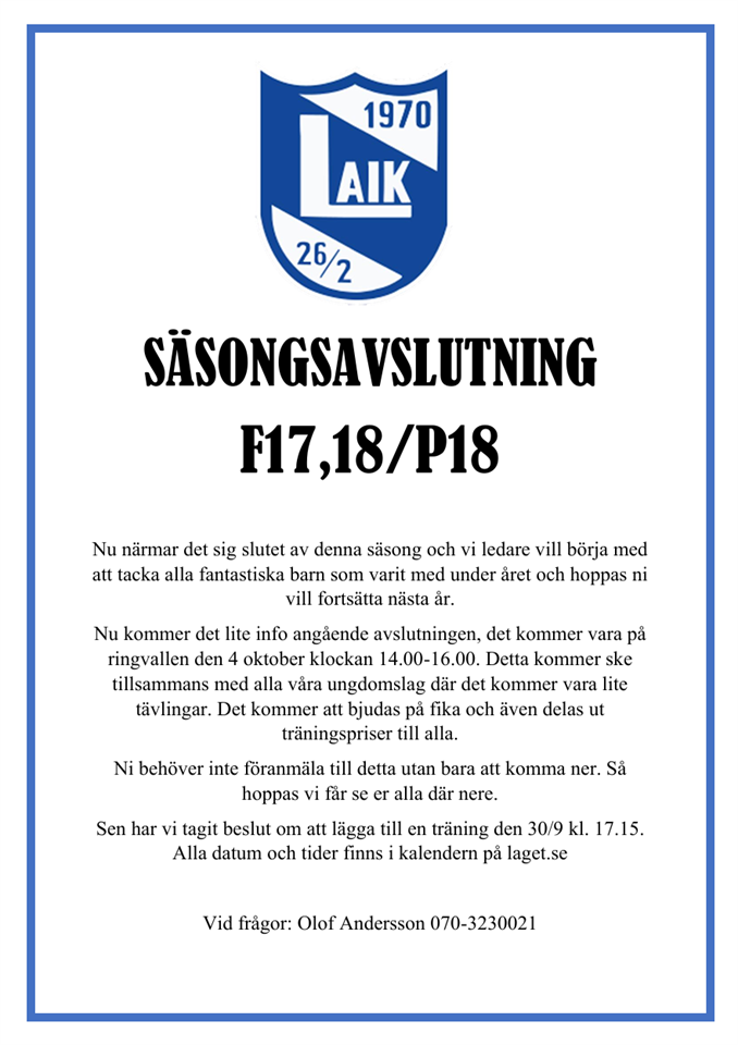 Fyll i din e-postadress för gratis uppdateringar om Lagans AIK F/P18+F17