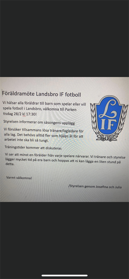 Välkomna på föräldrarmöte P-13 (2012-2013) 21 feb 2023 0kommentarer