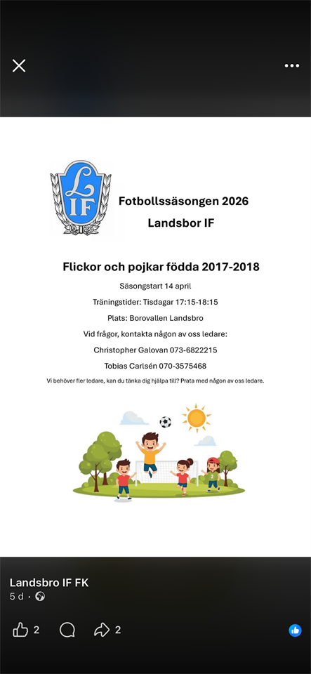 Fyll i din e-postadress för gratis uppdateringar om Landsbro IF Knattelag (killar,tjejer 2017-2018)