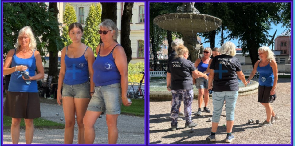 Undertecknad har nu kommit hem efter SM-veckan och här följer nu vad som hände under lördagen. De som kvarstod i dubbeln efter fredagens poolspel var Annelie och Alice resp EKA och Moa, båda lagen i damklassen. EKA och Moa slogs ut tidigt medan Annelie och Alice spelade mycket bra och avancerade till 1/8-match på Rådhusesplanaden i centrala Gävle inför helgflanörer på det fina gångstråket. I den matchen mötte de Eva Carlsson och Linda Bengtsson från La Boule d’Or. Eva har utmärkelsen ”Stor spelare” så motståndet var mycket kvalificerat. Denna gång räckte våra tjejer tyvärr inte hela vägen fram utan förlorade med 3-13. De kommer därmed på en delad 9:e plats. SAMMANFATTNING AV VECKAN Totalt kom 5 av våra lag till minst 1/8-final och slutade så här: Mixed dubbel V55 EKA, Pelle 3:a Singel V65 Pelle 5:a Trippel Dam Annelie, EKA, Moa 5:a Mixed dubbel Öppen Alice, Elias 9:a Dubbel Dam Alice, Annelie 9:a Utöver ovannämnda 6 medlemmar så deltog Fredrik, Henrik, CG, Birgitha, Pia A och undertecknad som också gjorde så bra de kunde efter sina förutsättningar. Totalt 12 spelare deltog. Styrelsen har förståelse för om många av våra äldre medlemmar inte ville åka till södra Norrland för att spela SM. Nästa år spelas SM runt Slottsskogen i Göteborg och då bör deltagarantalet bli klart mycket högre.
