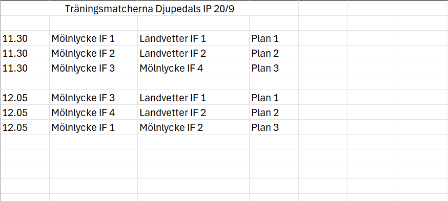 • Uppdaterade lag Träningsmatcherna mot Mölnlycke IF 20/9