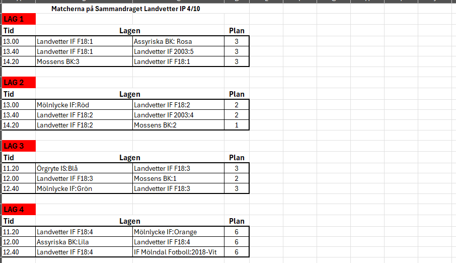 • Uppdaterade lag sammandraget på Landvetter IP 4 oktober