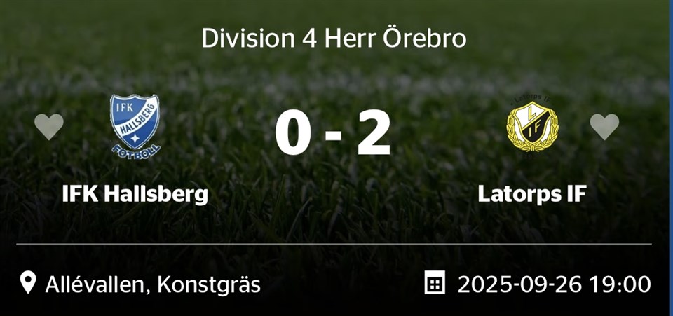 Fyll i din e-postadress för gratis uppdateringar om Latorps IF Seniorlag div 4