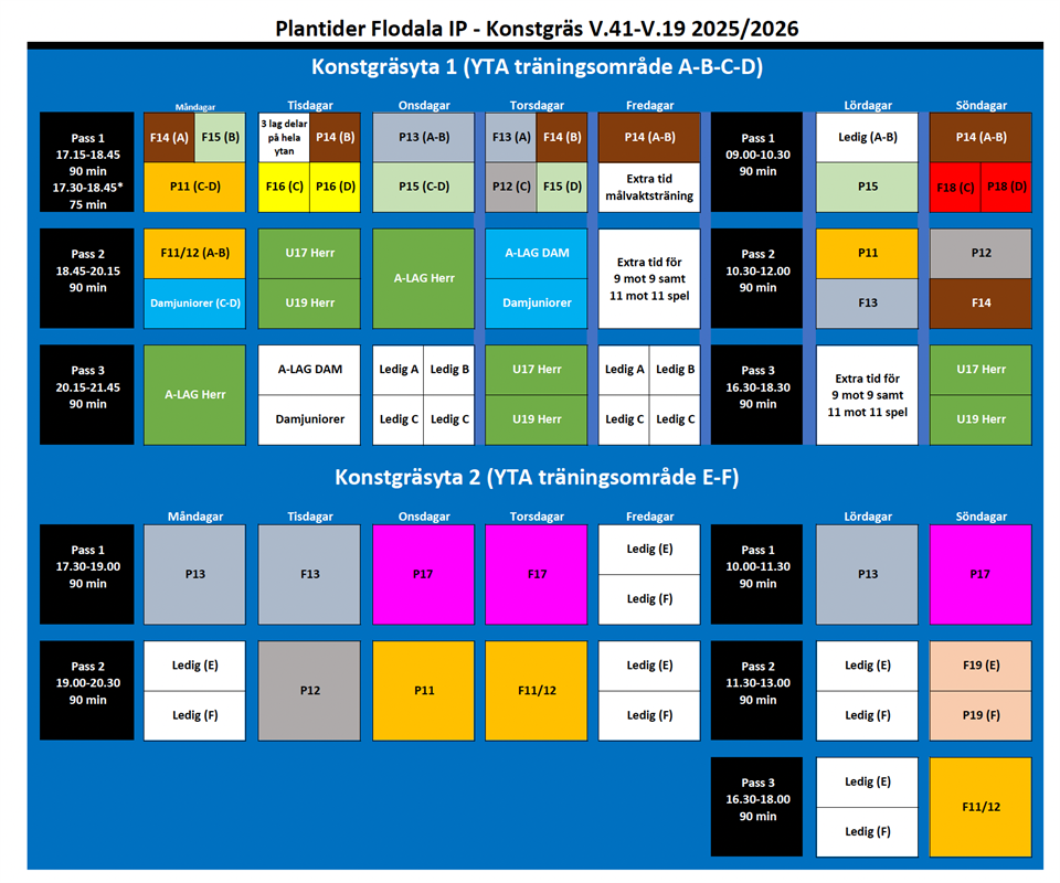 Hej ledare här kommer plantider konstgräs 1 och 2 på Flodala IP.