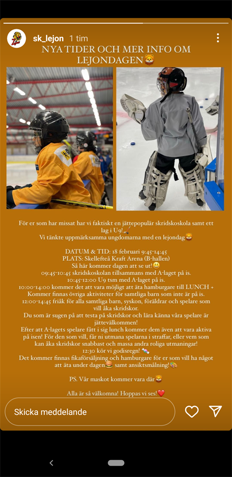 Hej, För att lättare kunna planera inför träningarna har vi börjat skicka ut kallelser till träningarna så vi vet ungefär hur många vi blir. Så vi ledare skulle bli väldigt glada om ni föräldrar kan svara på kallelserna. Mvh Lina Skridsko-/hockeyskola 28 feb 2023 5kommentarer