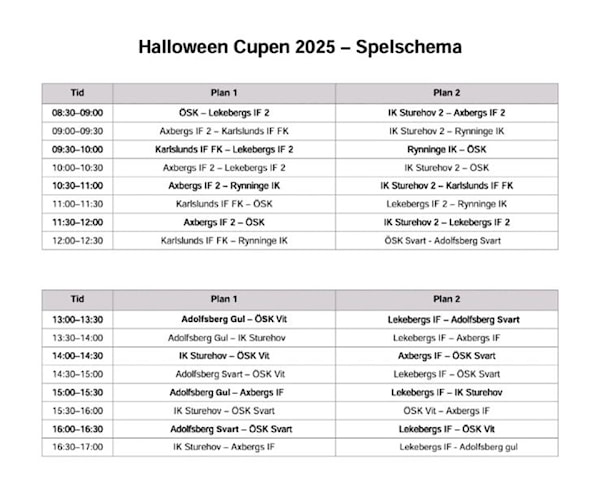 På lördag spelar vi Halloweencup i Örebro i Västerporten Arena.