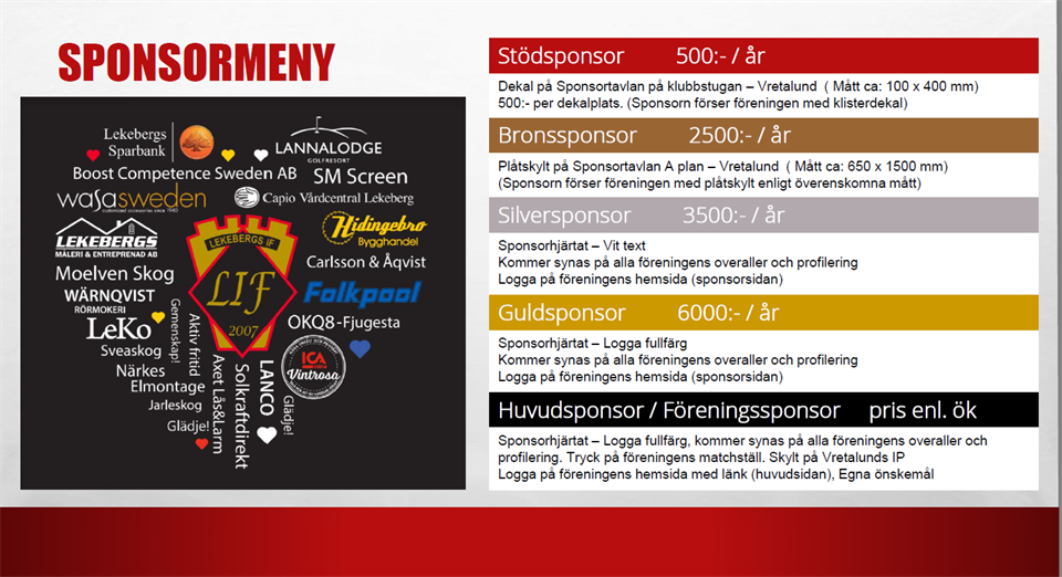 Nu söker vi fler och nya sponsorer inför 2026. Vill du eller någon du känner bli Lekebergs IF nästa sponsor?