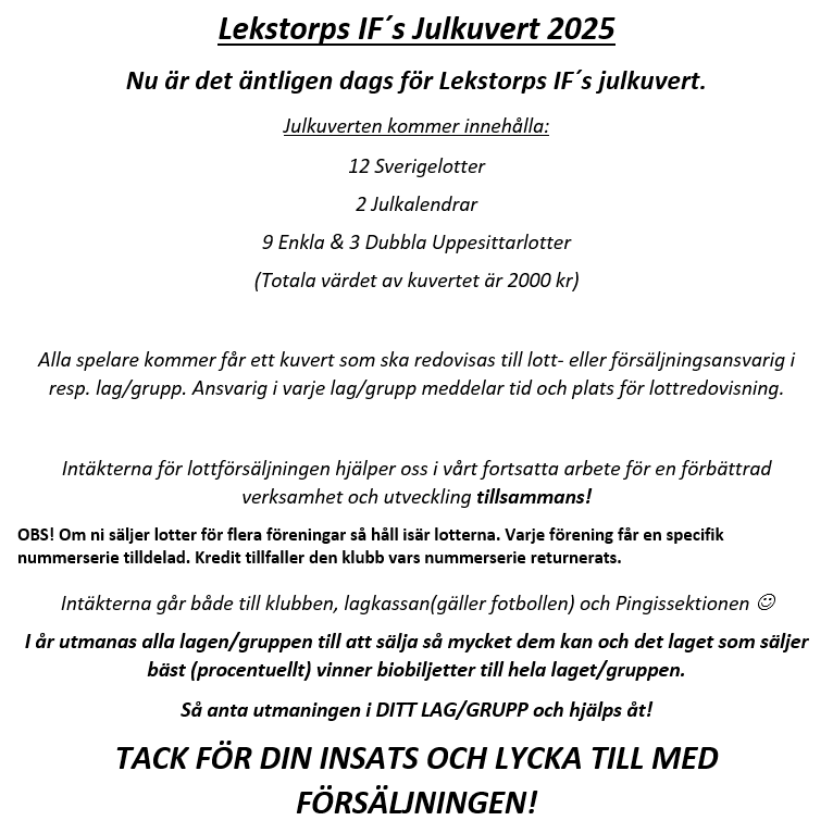 Klicka på bekräftelselänken i det mejl vi skickat dig för att börja ta emot uppdateringar från Lekstorps IF P16.