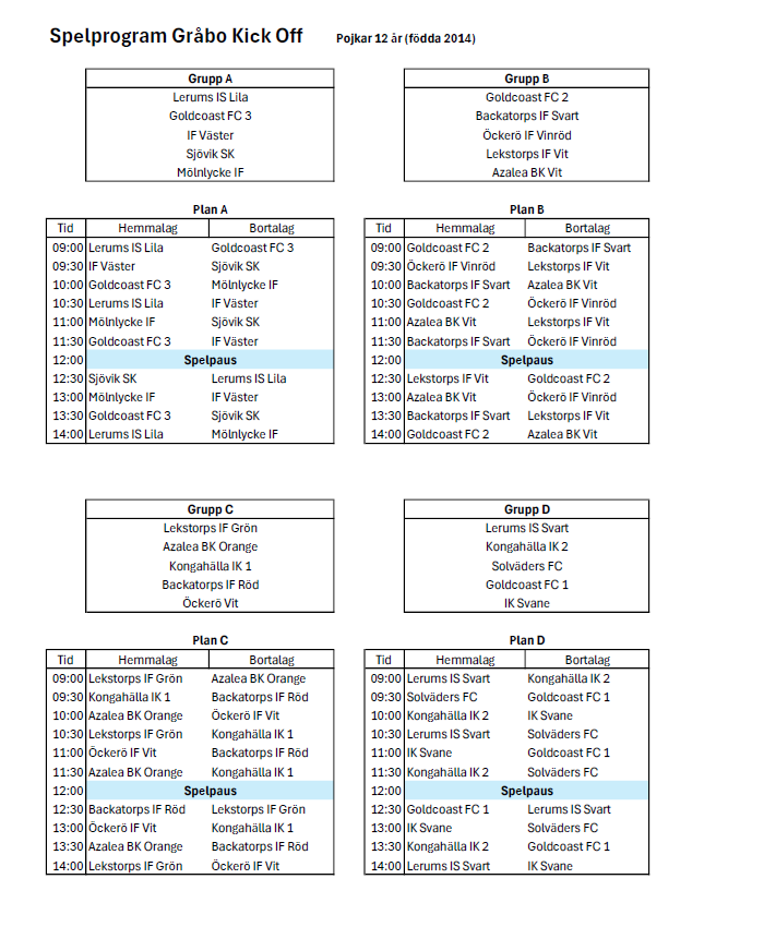 | Gråbo Kick Off (egen cup) | 12 apr, 08:00 |