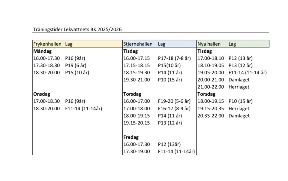 • Nya träningstider