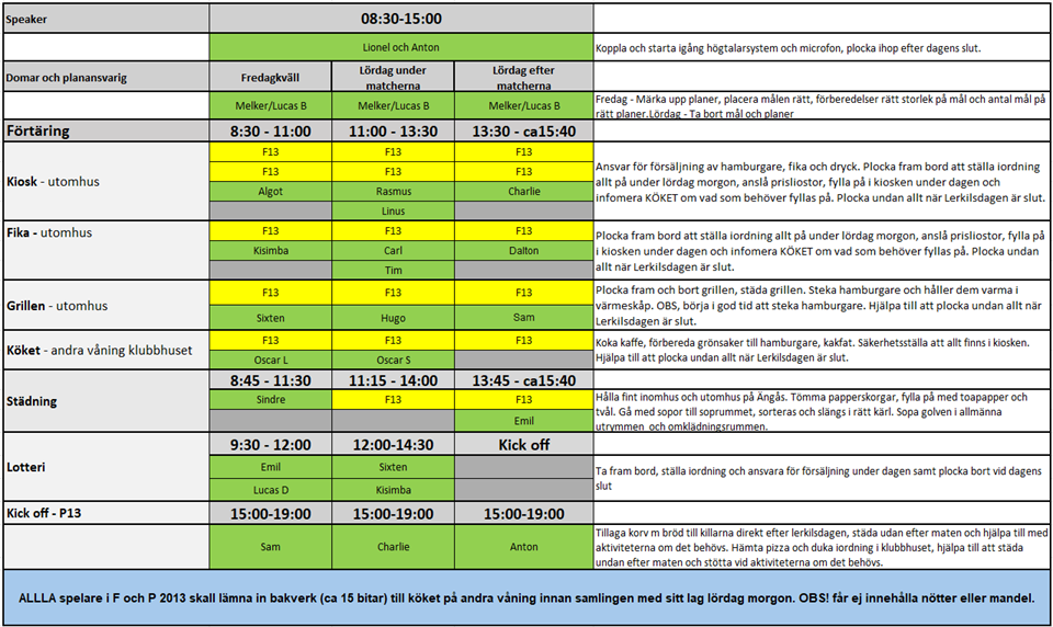 | Lerkilsdagen och kick off för spelarna | 18 apr, 08:00 |