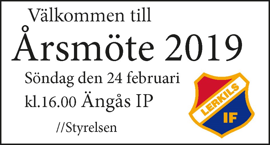 • Årsmöte Lerkils IF sön 24:e feb kl 16:00