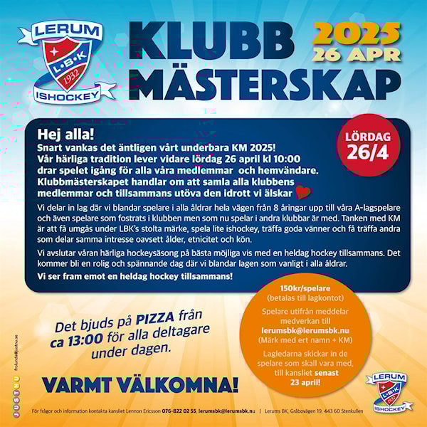 Vi avslutar säsongen med vårt fantastiska klubbmästerskap nu på lördag den 26 april.