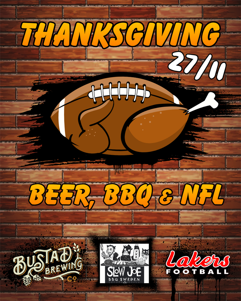den 27/11 kör vi återigen en thanksgivingkväll, precis som tidigare år är det hos/tillsammans med Bustad Brewing. Nytt för i år är att Slow Joe BBQ stöttar upp med grillning.