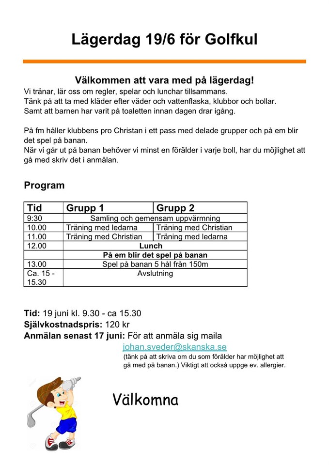 • Lägardag golfkul 19/6