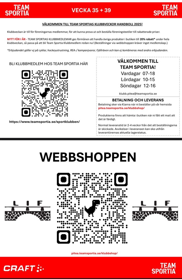 Man kan via QR-koden på bilden ovan beställa direkt i telefonen, men om man är osäker på storlekar så kan man även åka in och testa kläderna på teamsportia.
