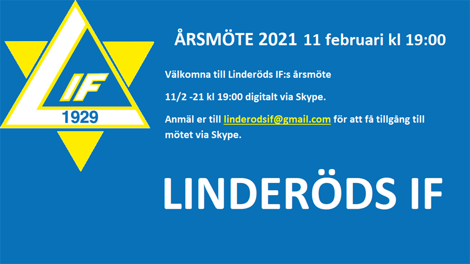 Välkomna till Linderöds IF:s årsmöte 11/2 -21 kl 19:00 digitalt via Skype. Linderöds IF 19 jan 2021 0kommentarer