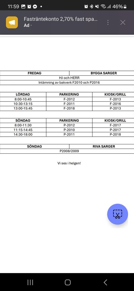 Jag byter också pass med en förälder i F2017, Novas mamma Sandra tar mitt pass 11:15.