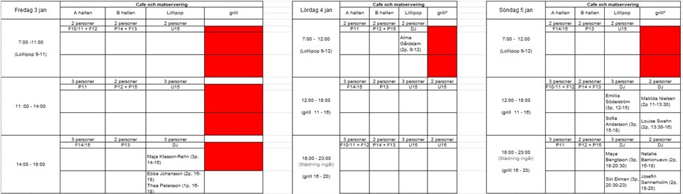 Behöver ni byta pass så kom överens och uppdatera direkt i länkade dokumentet.