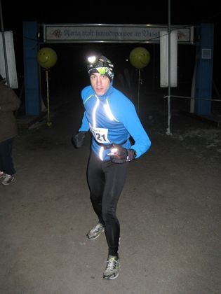 Ursvik Ultra Light Datum: 1 april 2011 Min tid: 5:25:12 Min distans: 45 km Väder: Halvklart, -4 grader Tänkte börja med den stora förklaringen, eller kanske snarare bortförklaringen. Jag har drabbats av den för löpare så fruktade sjukdomen maratonskräck. Anledningen är att jag efter Coasteering drabbades av att hälsenan svullnade. Sedan dess har jag dragits av allehanda vad- och hälsenebesvär. Så fort jag gjort något som skulle kunna likna ett långpass så har jag fått åtminstone rejält ont. Så hur skulle man då kunna springa ett marathon? Funderade några gånger på att springa ett under vintern, men jag vågade aldrig, utan fegade ur hela tiden. Nu kände jag att det gått alldeles för långt och att det var dags att möta min rädsla. Hittade ett lopp med mycket generösa reptider (första 30 km på 6 timmar). Om jag bara tar det riktigt lugnt så ska det väl ändå vara möjligt att genomföra... Ursvik Ultra är 75 km på små stigar och terrängspår i en skog i närheten av Stockholm City. Jag valde den lätta varianten. Bara 45 km. Fast det var inte helt lätt det heller. Banan var Extremspåret, 15 km långt, tre varv, i Ursvik, Sundbyberg. För det mesta så var spåret som vilket terrängspår som helst, visst lite backigt kanske, men ändå ungefär som ett vanligt terrängspår. För att göra spåret extremt, så hade spårkonstruktörena valt att låta spåret lämna terrängspåret och förvandlas till en liten stig som drog rätt ut i skogen. Gärna över stockar, stenar, rötter, omkullfallna träd, och förstås branta backar. Arrangörerna tycker att spåret inte är svårt nog. Så för att göra tävlingen lite mer utmanande så får man springa nattetid (start 00:00 för huvudloppet och 03:00 för lighten), och på en årstid då det nästan garanterat är blött och skitigt i skogen. Mitt hathinder var en sjö som bildads på ett gärde man skulle över. Iskallt vatten i skorna är inte min favorit direkt. Tur att det var så kallt som det var för ett gäng av lerpölarna som man skulle över hade frusit till. Tyvärr långt ifrån alla. Råkade kliva i några av dem när koncentrationen inte riktigt var på topp. Sen var det ett annat ställe där man kunde ha blivit riktigt blöt. Som tur var klarade jag mig. Det var ett vattendrag man skulle ta sig över. För att göra det lättare hade arrangören placerad några lastpallar, som nätt och jämt stack upp ur vattnet. Mellan pallarna fanns det brädor som man kunde balansera på. Sista varvet så saknades en bräda. Med ett vigt kattsprång lyckades jag på något sätt komma över ändå. Min taktik att ta det lugnt visade sig vara rätt bra när det var dags att forcera hinder. Jag kunde liksom bara skutta över, medan många av mina medtävlare trötta klev rätt ut i skiten. Sista varvet var jag antagligen piggast av alla ute i skogen. Så kändes det i alla fall. Får väl erkänna att jag inte riktigt höll mig till taktiken även om jag försökte. Första varvet gick väl en kvart för fort. Andra varvet gick bättre bara någon minut för fort. Men tredje varvet då jag i stort sett bara skulle gå, ja då gick det lika fort (eller långsamt) som första varvet. Till min ursäkt kan jag bara säga att jag har fruktansvärt svårt för att ta det lugnt. När det är tävling så vill jag liksom bara prestera. Nåväl, kom i mål bland de sista i min klass. Slagen med ungefär två timmar av segraren. Inte så lysande, men vaderna klarade sig (hyggligt i alla fall) och träningsvärken blev inte så farlig. En annan fördel med att ta det lugnt var att solen hann gå upp och man fick avsluta loppet i dagsljus. Gryningen var speciell. Det var häftigt att plötsligt börja urskilja svarta träd mot en himmel som inte var helt svart längre. Sen för varje gång man kom ut på ett gärde, så blev man förvånad över hur mycket ljusare det blivit. Efter några gärden så kunde man stänga av pannlampan. En udda sak som hände mig var att mitt ute i urskogen, mitt i mörka natten, så kommer plötsligt ett upplyst tunnelbanetåg rusande mot mig. Högst oväntat. Nix det var inte ett gäng andra löpare med pannlampor jag mötte (sådana tåg fanns det också) utan ett livs levande tunnelbanetåg. Det visade sig att den blå tunnelbanelinjen gick i en tunnel under skogen. Men mitt i skogen så var det en liten dal, såpass djup att tunnelbanan fick gå på en bro tvärsöver istället för under. Tydligen lyckades jag tajma löpningen såpass att jag lyckades möta tåget precis i sluttningen där det kom ut ur tunneln. En annan udda sak var att komma tillbaks till vintern och springa i minusgrader, med is och snö på marken. Och det när vi haft vår hur länge som helst. Bara veckan inför loppet så pendlade dagstemperaturerna mellan 10 och 15 plusgrader. Sprang i bara linne och shorts helgen innan. Men det är ju klart Stockholm ses ju som Norrland av skåningarna, och då ska väl vara kallt där också.