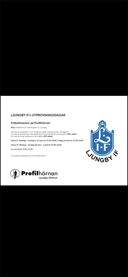 Klicka på bekräftelselänken i det mejl vi skickat dig för att börja ta emot uppdateringar från Ljungby IF F 2013.