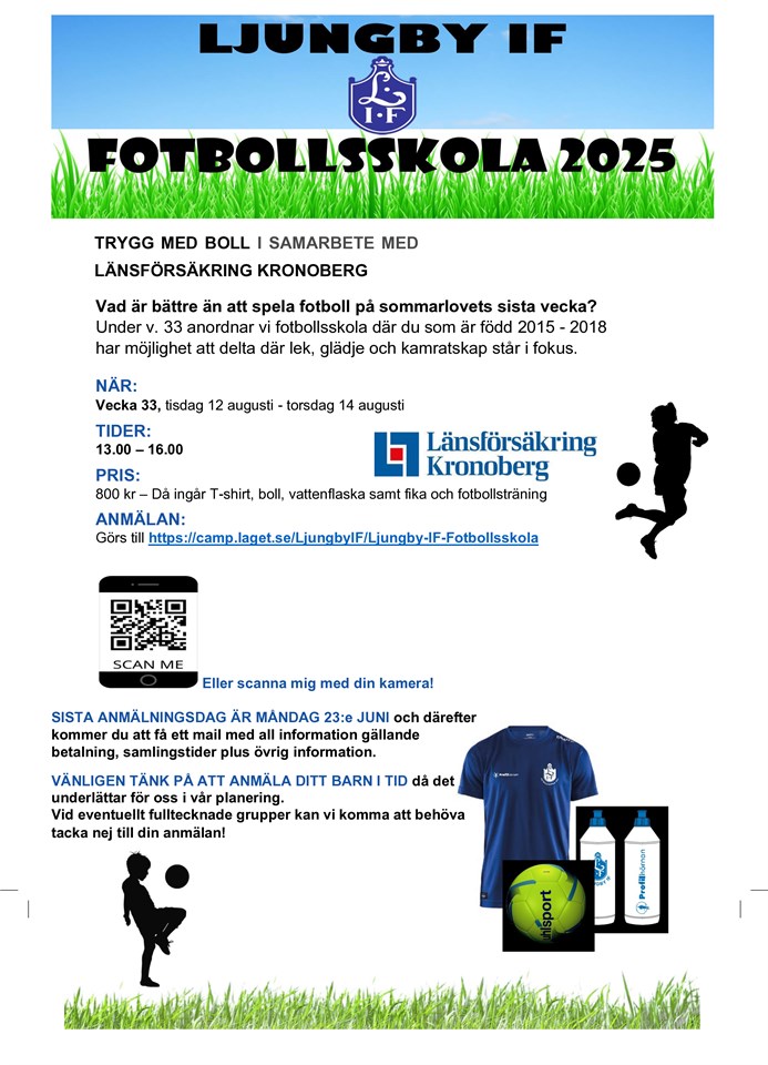 Här kommer en inbjudan till årets fotbollsskola som LIF arrangerar under sommarlovets sista vecka. För mer info klicka på bilden.