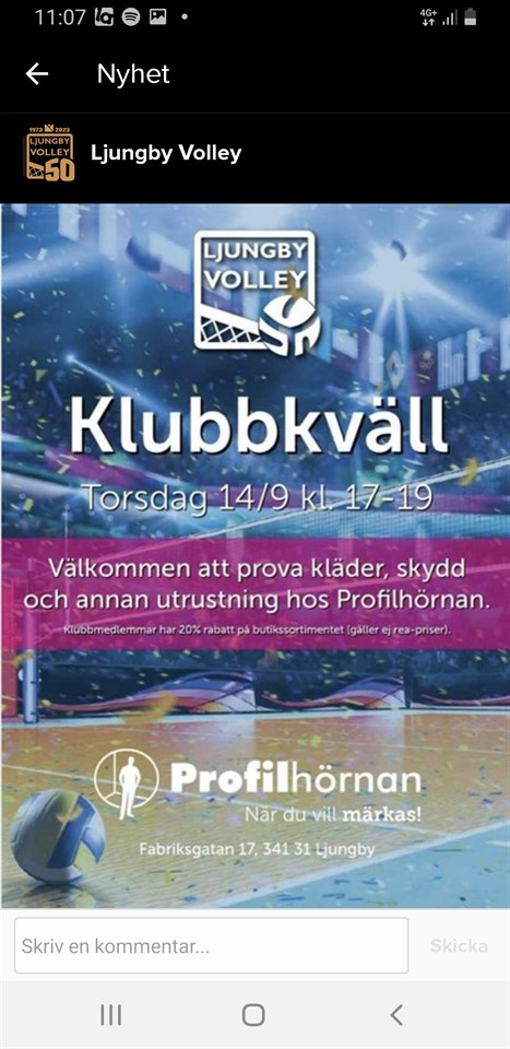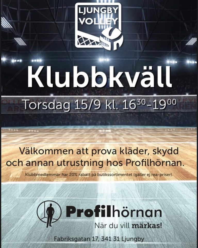 En lite sen notis men ikväll är det klubbkväll på Profilhörnan. Där kan man prova ut storlek till årets klubbtröja, men det finns även möjlighet att beställa från Ljungby Volleys klubbkollektion och andra bra erbjudanden. Kika förbi ikväll om ni har möjlighet! 15/16 15 sep 2022 0kommentarer