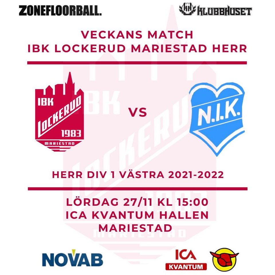 På lördag är det dags igen för hemmamatch för herrarna. Efter den senaste förlusten mot Hagfors på bortaplan är det garanterat ett revanchsuget Lockerud som kommer kliva ut på planen nu på lördag, och göra allt för att komma på vinnarspåret igen. Såhär säger tränaren Libäck inför lördagens match mot Nilsby: "Efter några resultatmässigt sämre matcher det senaste är det nu det ska vända för oss. Vi vet att vi är riktigt bra när vi hittar rätt i matcherna, men vi behöver bli jämnare i våra prestationer. Nilsby har vi bra koll på hur vi ska stoppa, och vi kommer vara redo att ge dom en rikigt bra fight nu på lördag." Vi hoppas på en fartfylld och intensiv match, och vi hoppas att läktaren blir välfylld med många hejande supportrar. Kan man inte se matchen på plats går den som vanligt att se via livestream. Biljetter till matchen köps via länken här nedan, eller på plats i arenan på matchdag (i mån av plats). https://www.biljettkiosken.se/event/211127-ibklockerud-serie_herr_nilsby Matchen streamas via länken här nedan: https://www.innebandy.tv/livestream?id=s-ibk-lockerud-mariestad-herr-vs-nilsby-ik-herr-58ygk