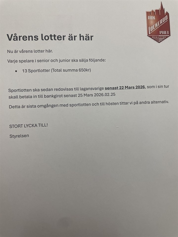 Klicka på bekräftelselänken i det mejl vi skickat dig för att börja ta emot uppdateringar från IBK Lockerud Mariestad Juniorgrupp Herr.