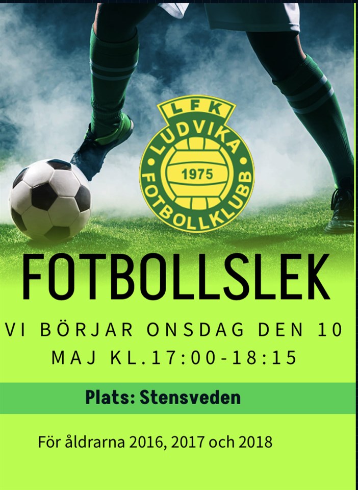 Varmt välkomna till säsongen 2023 för fotbollsleken! Vi startar onsdag 10 maj kl.17.00-18.15 på Stensveden I år genomförs fotbollsleken för spelare födda 2016, 2017 och 2018. De som deltagit tidigare säsonger och finns med på laget.se kan bekräfta sitt deltagande med att besvara kallelsen som skickas ut närmare premiärdagen. Nya deltagare skickar anmälan till info@ludvikafotbollsklubb.se där ni meddelar namn, personnummer och adress på spelare samt mailadress, telefonnr och namn till vårdnadshavare. När anmälan gått igenom får man ett mail med länk till att registrera inloggningsuppgifter till laget.se som används för informationsutskick, kallelse till träning m.m. Vi rekomenderar att man sedan använder appen laget.se för att enkelt kunna läsa utskick, besvara kallelser och följa sitt/sina lag bl.a. genom notiser som skickas. Kostnad fotbollslek: 100kr. Vi ser med glädje fram emot roliga och lekfulla onsdagar, välkomna! IFK Ludvika arrangerar fotbollslek för flickor samma dag, tid och plats. Ludvika FK 18 apr 2023 0kommentarer