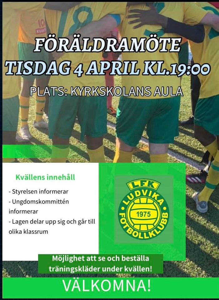 Välkomna på föräldramöte tisdag den 4/4 kl 19.00 i Kyrkskolans aula. 19.00- gemensamt för alla föräldrar i aulan då styrelse och ungdomskommitté informerar. Därefter delas lagen upp och ledare och föräldrar i p13-14 träffas i ett klassrum för information runt laget och den kommande säsongen. Det kommer finnas möjlighet att se och beställa kläder under kvällen. Vi vill att minst en förälder per spelare deltar. Kallelse har gått ut via laget.se, man anmäler då att man som förälder deltar- inte spelaren. Välkomna!!