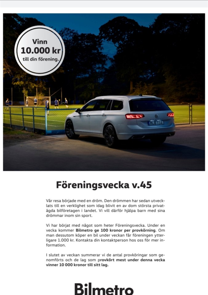 Uppmaning! Stötta LFK genom att under v. 45 provköra en bil på Bilmetro. Föreningen får 100kr/provkörning. Bara att tuta och köra så mkt ni orkar🚙💨 Uppge att det är just LFK ni vill stötta. Den förening som har flest provkörningar när veckan är slut vinner dessutom 10.000kr extra. Sprid gärna till vänner, bekanta och familj så att fler kan stötta LFK. Kom igen, nu kör vi över de andra föreningarna!😜?🚙💨💰 P-2009/2010 4 nov 2020 0kommentarer