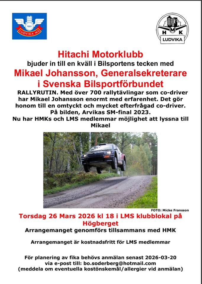 Fyll i din e-postadress för gratis uppdateringar om Ludvika Motorsällskap