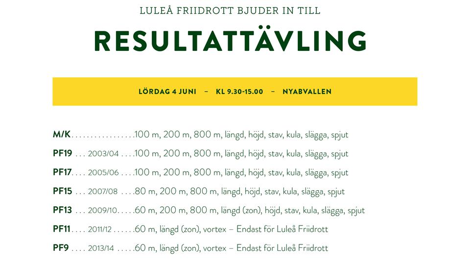 Uppdateringar Resultattävling på Nyabvallen 4 juni