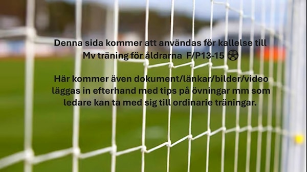 Denna sida kommer att användas för kallelse till Mv träning med Andreas A. för åldrarna F/P13-15