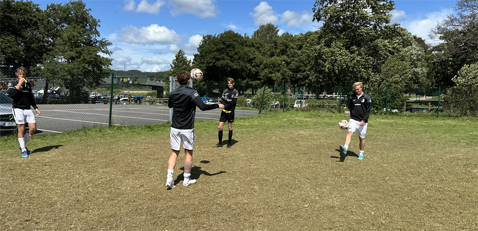 Slutspel, vinna eller försvinna, idag var det på riktigt laddat. Vi ställdes mot ett Myresjö/Vetlanda som ur en tuff grupp landat på tredje plats, med målskillnad som avgjorde till slut. Efter lite snabb videoanalys, så insåg vi att detta kommer bli en av de tuffare matcherna vi skulle få spela, spelskickliga, organiserade och bra på mycket. Men våra killar var otroligt fokuserade då vi anlände Noltorpsvallen, en anspänning fanns absolut - men målet tydligt - vi skall spela på Kviberg i morgon, inte sluta turneringen i Alingsås. En bättre plan, mer plana ytor, bra med publik, sol, med- eller motvind modell kraftig, och en möjlighet att rulla lite mer boll och få igång vårt spel ännu mer. En aningen modifierad startelva tog jobbet direkt och bjöd upp till en bra kamp och ett böljande spel under första halvlek. Med vinden i ryggen kunnde vi skapa en del farliga lägen, men inga mål tillkom från något av lagen. Ett tight mittfält och snabba ytrrar gjorde att våra killar fick slita lite, men löser det riktigt fint. Efter lite paus och snack, att fortsätta som vi inlett, byter vi in några friska ben för att ta oss an motvinden. Vilket skulle komma att behövas. M/V kom med ett starkt tryck och satte Olle på prov flera gånger, men idag vägrade både han och laget i övrigt att släppa in några bollar. En riktig chans som fick hjärtat att hoppa till var en lång lång utspark som vinden tog med sig och studsade över Olle men som tur var utanför en bra bit. Klockan tickade på och vi gick mot slutsignal, och ett potentiellt straffavgörande. När skulle vi krita ned eventuella skyttar? Jinxar vi? Skall vi vänta till pipan ljuder? Då det återstår 30 sekunder, justerar vi elvan och sedan är det dags. Straffar kommer avgöra vårt öde idag. 19 - 8 - 4 - 15 - 12 ordningen på våra killar som fick möjligheten att skjuta en straff. Vår nr 1 i målet, som var ordentligt uppvärmd efter några svettiga räddningar. Teamet på bänken på rad, med armarna om varandras axlar, samma på planen. Nu gäller det. Vinna eller försvinna. Storspel av Olle, två räddningar, stabila skyttar, en iskall avgörande straff till 4-2 av Oscar ger ett OTROLIGT sergerjubel, och killarna som blidar klunga av glädje. De har gjort vad vi snackade om, vad de ville, vad vi pushat för - Kviberg på fredag. Alla 18 har på alla sätt varit med, återigen, för att bidraga till denna vinsten. Publiken lika glada som vi ledare, och killarna. Glory glory Lunden...vi tackar ett förkrossat motståndarlag, och domarna för en god match. Nu laddar vi om för 1/8 på Kviberg imorgon, det är med trötta ben och skallar, och för oss äldre lite darrig puls. Nu kör vi järnet igen, det är inga problem att käka, duscha och sova. Vi ses på Kviberg!! 1/8 final, Kviberg 17 11.00 Lunden ÖBK - Ingarö IF