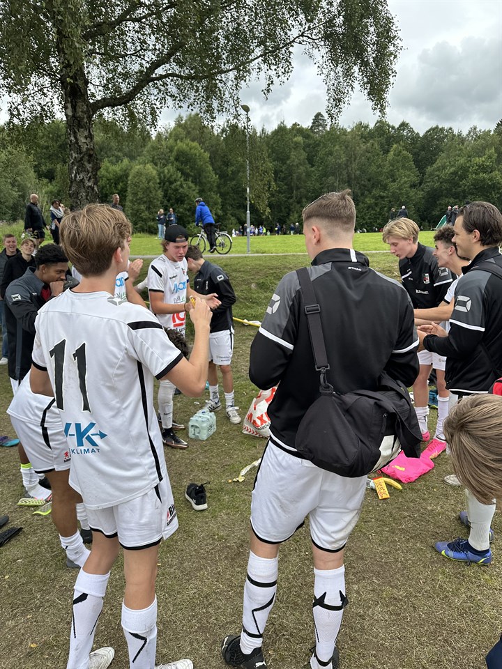 Sista gruppspelsmatchen, en möjlighet att plocka en nödvändig trepoängare för att slåss om 2:a platsen i gruppen och ett taggat gäng killar som ville visa sig från sin bästa sida. Motståndarna för dagen, Proskills SA, från Sydafrika, ett spelskickligt lag, med hypersnabba yttrar och en ordentlig intensitet på alla sätt. Vi inleder bra och skapar nästan omgående ett par vassa lägen, vår storlek nyttjas på bra sätt, vi ligger tightare och tar dueller. Men det är fortsatt inte ofarligt, vi har svårt att få stopp på de individuellt skickliga motståndarna. Kring minut 9 får vi en möjighet efter lite trassel på mittplan, men Morris snor åt sig bollen, tar sig igenom 2-3 motståndare och lyckas vinkla fram en djupledsboll till Oscar som löper i luckan och drar in bollen, lågt i borte, och det är 1-0. Tyvärr lyckas vi inte stå emot mer än en dryg minut, innan det bli ett olyckligt bolltapp en bit in på offensiv halva, sedan bolltapp ut vid mittlinjen, inkast och snabb kontring och kvitterat 1-1. Men vi har bestämt oss för att verkligen gå för en seger, och vi justerar lite byten i paus, sedan sätter vi fart igen. I minut 38 lyckas vi nyttja vår storlek och skicklighet på en hörna, Samuel slår den från höger, Morris når högst och nickar in den tydligt. Härligt, nu får vi ösa på. Vi är beroende av att det italienska laget vinner stort mot Nora, och vi slår Proskills med några mål. Innan slutsignalen så gör Morris det snyggaste målet för gruppspelet, en vänster upp i krysset otagbart för målvakten och vi har 3-1. Nu forcerar vi vidare för att tjäna några extra mål, men det stannar vid 3-1 och vi tar våra önskade tre poäng med några mål på plussidan. Men tyvärr har slutsignalen ljudit, 2-1 till italienarna innebär att vi missar andraplatsen på målskillnad, surt surt. Vi hade kunnat panga på igår, och plocka en trea, men så blev det inte. Nu är det fullt fokus på 1/16 final imorgon, då är det vinna eller försvinna som gäller. Spännande på alla sätt. Med lite magiska krafter kanske vi även har tillbaka Moltas, om känningen är bättre, vi håller alla tummar. Kul att se alla killar ge allt, på planen, på bänken och verkligen peppa och stötta varandra. Det tätnar nu på vägen mot slutspel och allt vad det innebär. Det som glädjer oss ledare är att vi har fin support från föräldrar, syskon, släktingar och vänner samt att vi verkligen rullar runt på alla killar i truppen. 1/16 final, Torsdag 20 juli, 14.10 Noltorpsvallen 1 Lunden ÖBK - Myresjö/Vetlanda FK