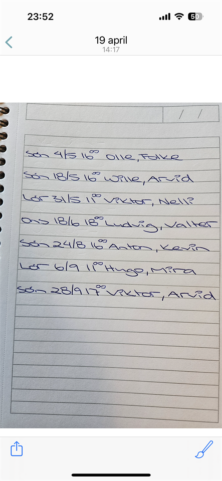 Kiosklista! Kom 45min innan matchstart Ingrid som kioskansvarig låser upp kiosken. Koka korv och kaffe. Ta med en mjuk kaka som kan säljas. Räkna av växelkassan och placera den på överenskommet ställe. Diska ur kärl och stäng igen kiosken. P/F 2010-2013 21 apr 2025 0kommentarer