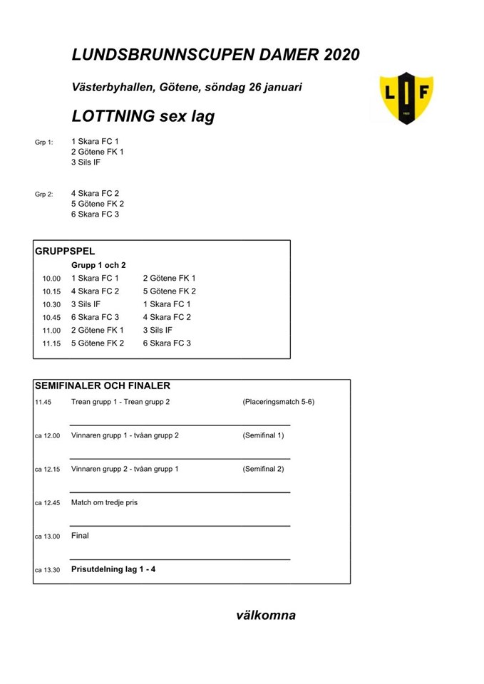 Nu är det dags för vår årliga futsalcup i Västerbyhallen i Götene. Herrcup lördag 25 jan med matcher från kl 10 till14:30. Damcup söndag 26 jan med matcher från kl 10 till 13:30. Kom och heja fram LIF´s herrar och Götene FK´s damer.