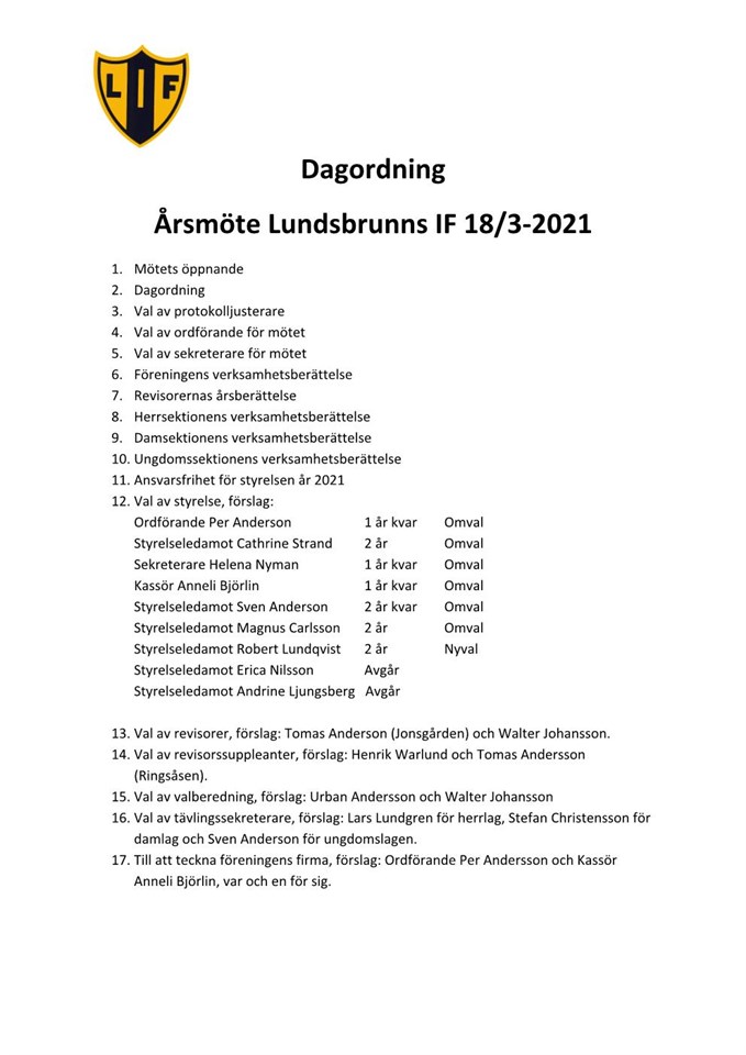 Årsmöte 2021 torsdagen den 18 mars kl 19:30