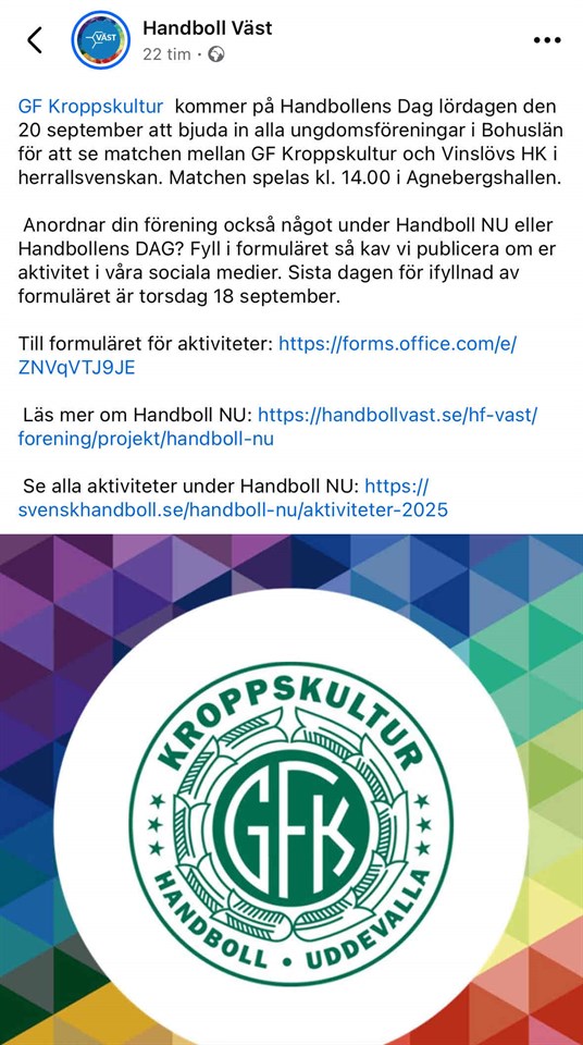 Gratismatch mellan GF Kroppskultur och Vinslövs HK på lördag kl 14:00 i herrallsvenskan.