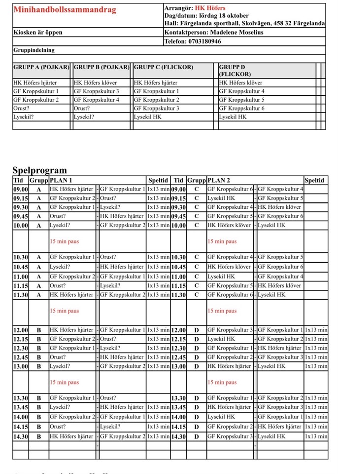 Jag har nu laddat upp en bild på det preliminära spelschemat där vi är LHK i grupp C, alltså gemensam uppvärmning ca 8:45.