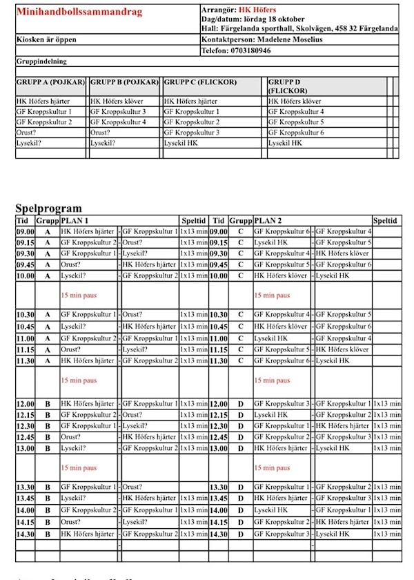 RapporteraVi får då åka från Mariedal vid ca 07:30-07:45. Jag återkommer när jag har det slutliga spelschemat…