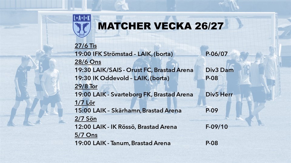 Damerna, ungdomarna och herrarna har match i helgen, kom och stötta vårat LAIK! Lysekils AIK 18 aug 2023 0kommentarer