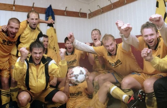 LFF kommer inte att nå division 3 nästa säsong. Men några som gjorde det 1994 var följande gubbar. Från vänster: Mattias ”Tajjarn” Olsson, Roger ”Mackan” Karlsson, Rickard Wiik, Fredrik Thell, Jörgen Björnstad, Björn Kaspersson, Christian Lycke, Magnus Nilsson. När avancemanget var klart såg det ut så här. Men en fråga är obesvarad. Vem är det som ligger ner i mitten med bollen täckt över ansiktet? Kanske någon av de gamla kan svara på? Skriva gärna hans namn i gästboken. Trevlig helg! Foto: Lennart Hård Lysekils AIK 2 okt 2009 0kommentarer