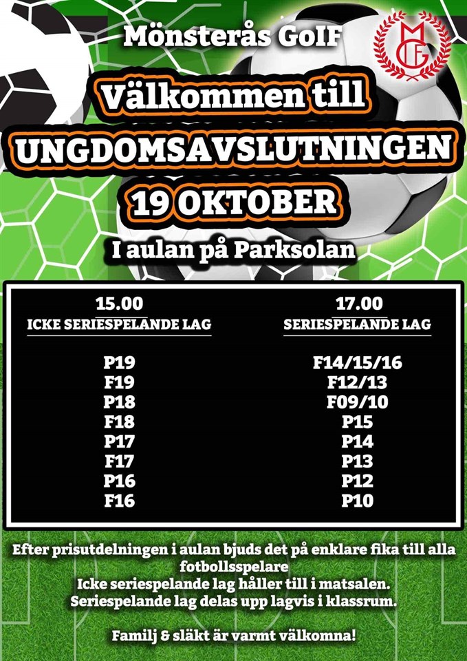 Följ oss för uppdateringarUngdomsavslutning | 19 okt, 15:00 |