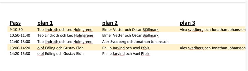 Hej Här kommer passen för den 4/2. Obs se över passen och VILKEN DAG. Då det ligger 2 scheman ute. Detta är för den 4/2. Tänk på kom i god tid. Minst 30min innan. Byten får endast ske via Domaransvarig. Inga byten sins emellan utan att rådfråga Domaransvarig. Vid frågor ring Jennie 0704536871 Domare 18 jan 2023 0kommentarer