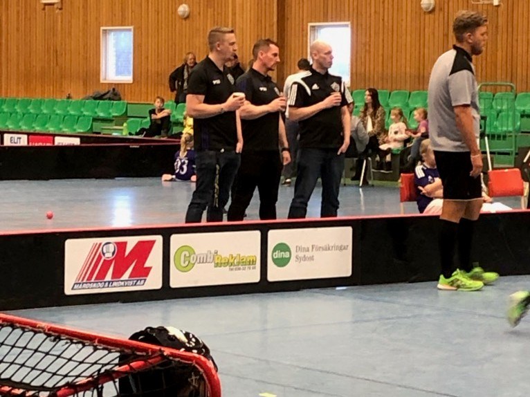 Så har laget spelat sin andra match när vi ägnade stor del av lördagen tillsammans då vi mötte Tranås och JIK i träningsmatcher i Norrahammars Sportcenter. Då vi blivit så många fler sista tiden så var det även matchdebut för många av tjejerna denna gången. Det var dock stor risk för att det bara hade blivit en match denna dagen då vi tidigt i torsdags morse tog emot meddelandet att Tranås nu inte lyckades få ihop de 2 lag som de tänkt. Med lite extra insatser från oss tränare så lyckades vi dock få napp på ytterligare ett lag när vi kontaktade Marie från JIK:s som direkt på telefon tackar ja till att komma och spela ännu en match mot oss och mot Tranås. Med facit i hand blev denna lösning troligen bättre för oss alla då Tranås spelare har spelat bra mycket längre tillsammans och även kört ett antal poolspelsmatcher sedan tidigare. Även på domarsidan fanns det en viss oro då vi bara lyckats få tag i en föreningsdomare. Där får vi tacka våra duktiga tjejer ifrån F06/07 (Amelia Hall, Allie Halvarsson, Ida Brahesjö och Moa Rademo) De fick även fint stöd av Jakob Bråtenholme som är en av föreningens domare. Vi spelade 4 matcher med våra spelare, men då genom att dela upp oss i 2 olika lag där båda möter Tranås samt JIK varsin gång. I matcherna mot Tranås ser man hur mycket matchspel samt träningsmängden gör på spelet. Våra tjejer var inte riktigt beredda på Tranås fina passningsspel, positionsspel och skott, men kämpade ändå på så gott de kunde och de hade verkar haft kul, vilket trots allt är det viktigaste i denna åldern. I de båda matcherna mot JIK hävdar sig våra lag mycket bra och det är två väldigt jämna matcher som spelas. JIK var efter matcherna framme och tackade för att de fick komma och vi fick en extra chans att tacka för att de ställde upp på så kort varsel. Det var mycket publik i hallen vilket resulterade i en bra förtjänst från kiosken där föräldrarna gjorde en kanoninsats med att både baka och hålla i försäljningen. Efter matcherna måste vi även lyfta fram jobbet som föräldrarna gjorde med att plocka ner all sarg och städa iordning i god till innan vår tid var över. Som ni ser på bilden så är det väldigt slappt att vara tränare i det här laget och mest risk är att man får tennisarmbåge PGA allt kaffedrickande =) STORT TACK till alla som gjorde denna dagen så bra. Under kommande vecka kör vi träning som vanligt på onsdag för de som kan och vill komma. Försök gärna vara på plats 15 minuter innan så vi kan prata lite om matchen och byta om i god tid innan vår träning börjar kl 17.30 Välkomna!
